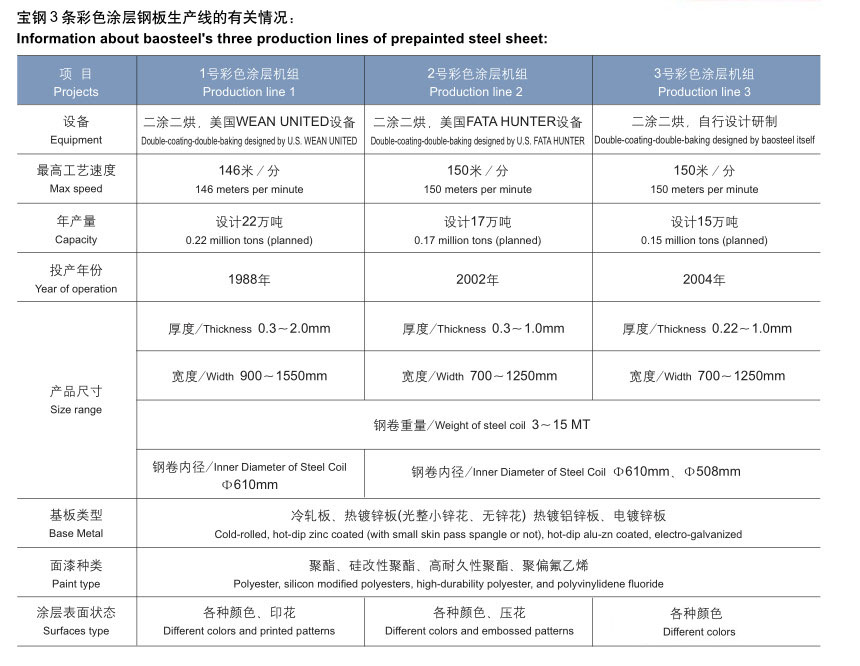 為了滿足用戶個(gè)性化的膜厚需求,寶鋼也根據(jù)不同用途、不同涂層特性與用戶簽訂特定的膜厚及其他性能需求,例如家電用途產(chǎn)品、三涂層產(chǎn)品、背面厚涂層產(chǎn)品等。