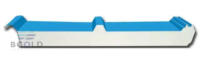 3、在第一塊板就位合適后,依次安裝就位第二塊,并應主導風向鋪設。板間密封時可用鐵釘臨時固定在夾芯板側(cè)面。