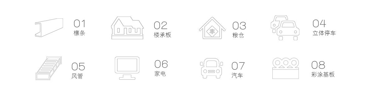 ??? 產(chǎn)品用途 熱鍍鋅產(chǎn)品運用領(lǐng)域相當(dāng)廣泛,其優(yōu)點在于防腐年限長久,適應(yīng)環(huán)境廣泛,一直是很受歡迎的防腐處理方法。被廣泛運用與電力鐵塔、通信鐵塔、鐵路、公路防護(hù)、路燈桿、船用構(gòu)件、建筑鋼結(jié)構(gòu)構(gòu)件、變電站附屬設(shè)施、輕工業(yè)等。